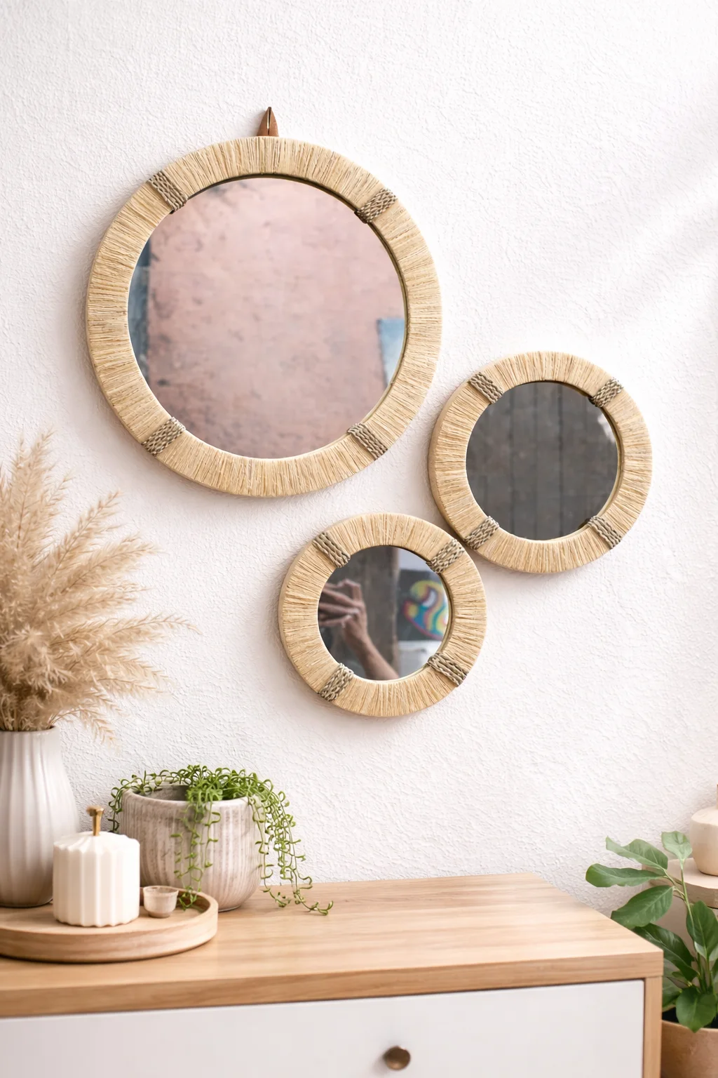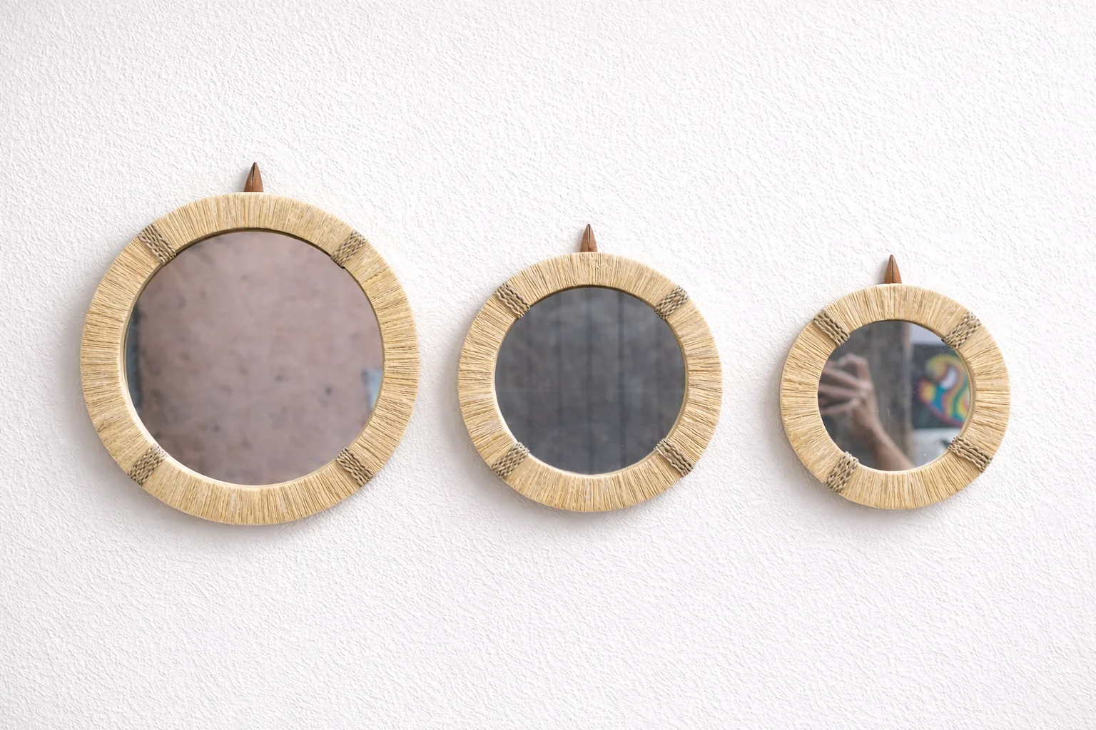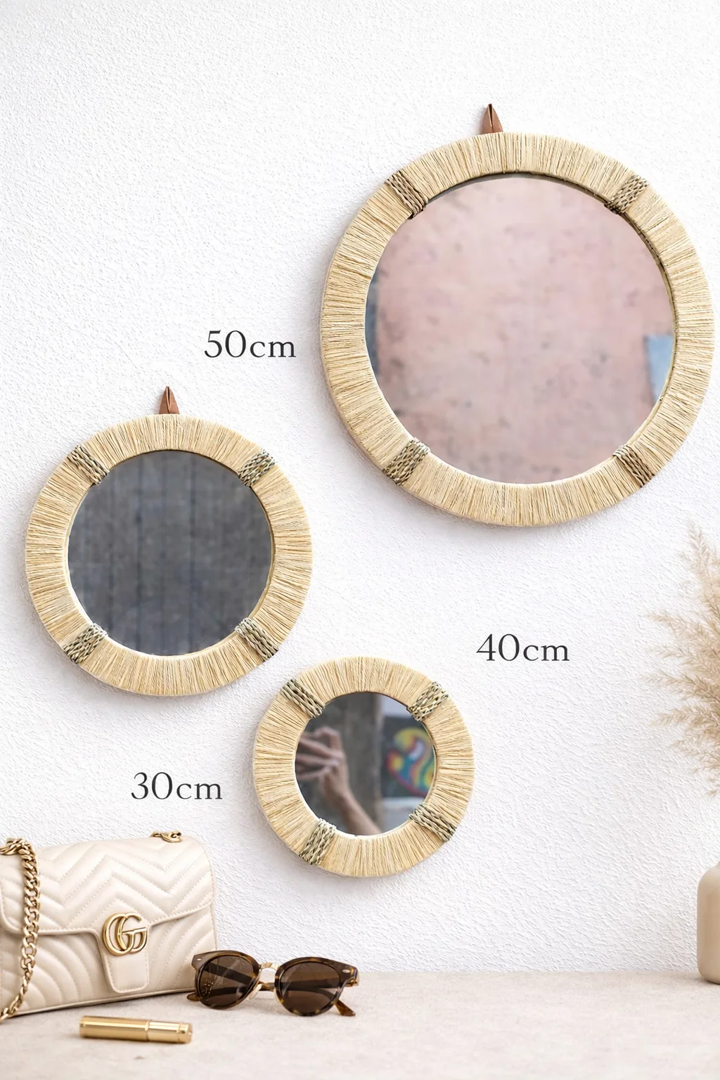 أضف لمسة من الأناقة الطبيعية إلى منزلك مع هذه المجموعة المميزة من المرايا الدائرية المصنوعة يدوياً. تتميز بتصميم فريد وأحجام متعددة لتناسب جميع الأذواق والديكورات. مثالية لتعزيز جمال أي غرفة بلمسة من الديكور الخشبي الفاخر. 🌟